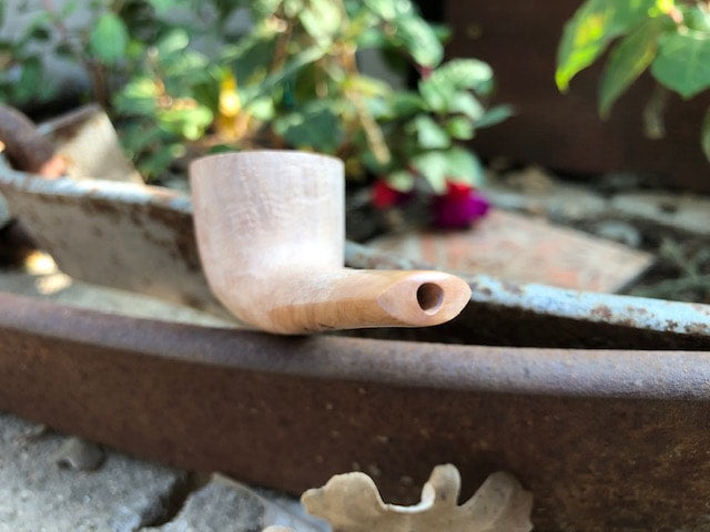 It has been skillfully handcrafted from fine Italian Briar by my good friends in Italy. The all briar construction also means that the "stem" portion is extremely comfortable to clench. It will indent and form to your personal bite. It is one of the lightest briar pipes in the world for its size.
