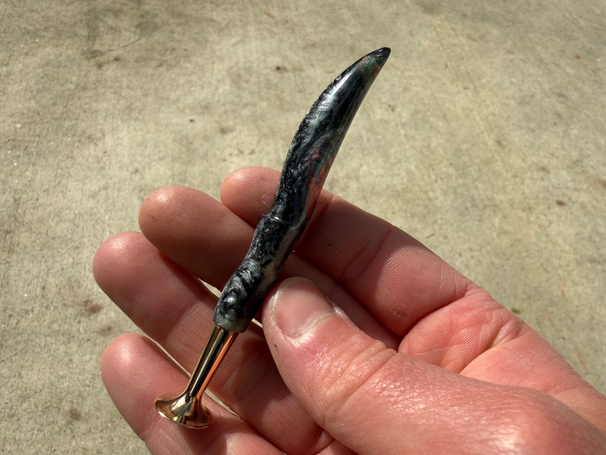 Hand carved by Chris Morgan.3.75" long. Brass foot.